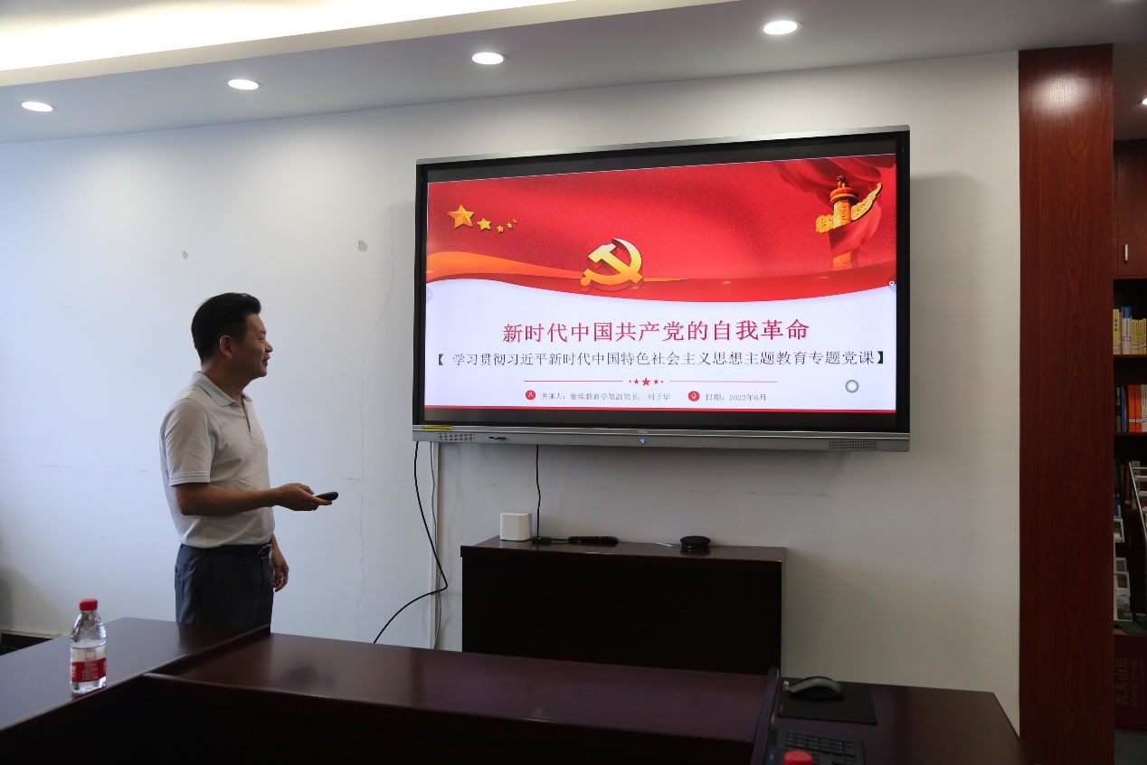 为深入学习贯彻习近平新时代中国特色社会主义思想,推动学院主题教育学深悟透,学以致用,走深走实,根据学院党总支工作部署,6月26日下午,学院党总支书记陈志行、副院长刘子华、学院教工第二党支部书记陈富利为教工第二党支部党员讲授主题教育党课。
