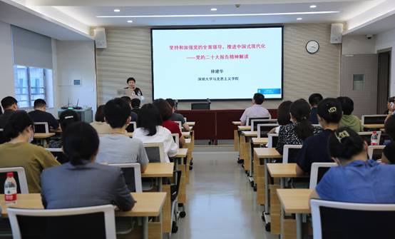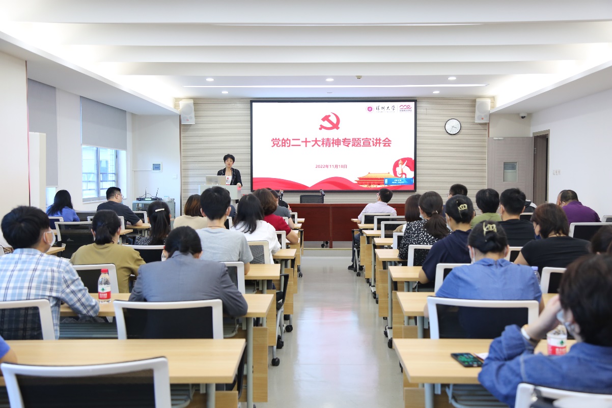 为深入学习宣传贯彻党的二十大精神,推动学院继续教育等各方面业务高质量发展,11月18日下午,我院邀请学校学习贯彻党的二十大精神宣讲团成员徐建华教授到学院做专题宣讲会。学院党总支书记王瑜主持宣讲会,院领导班子、党员干部、教职工共计70余人参会。