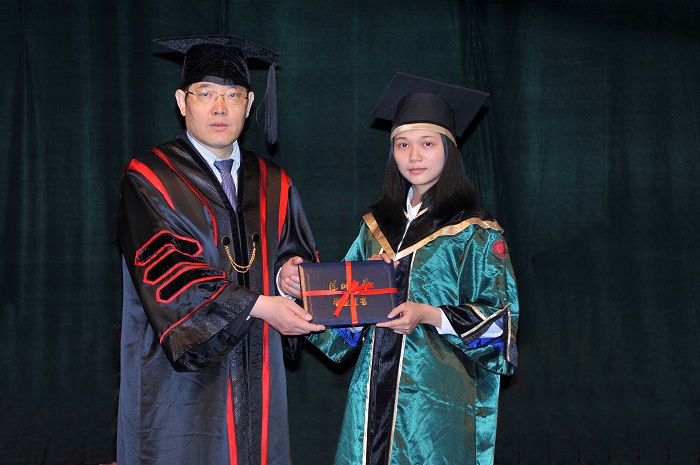 在激动人心的音乐声中,阮双琛副校长为每一位毕业生颁发了毕业证书并合影留念。