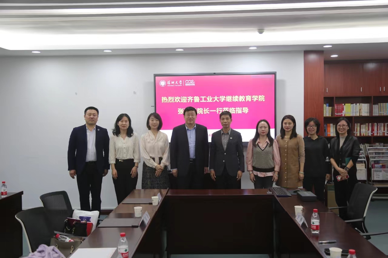 1月18日下午,齐鲁工业大学(山东省科学院)继续教育学院党委书记、院长张建华、齐鲁工业大学(山东省科学院)计划财务处副处长刘洋、齐鲁工业大学(山东省科学院) 继续教育学院自学考试办公室主任侯宝霞、齐鲁工业大学(山东省科学院)继续教育学院培训中心主任管震等一行4人莅临学院调研交流。深圳大学继续教育学院院长李伟文、副院长胡蓉及培训教育部负责同志等参加座谈。