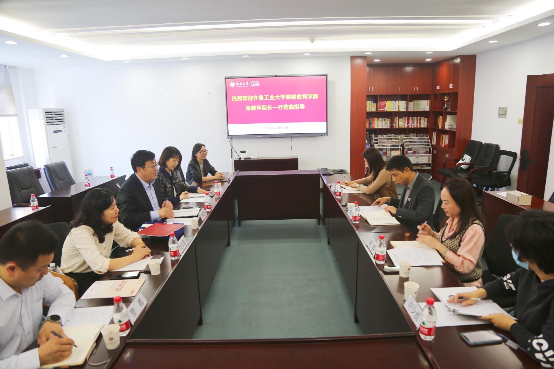 张建华院长简要介绍了齐鲁工业大学(山东省科学院)的发展沿革、学科建设等情况以及齐鲁工业大学(山东省科学院)继续教育学院在成人高等学历教育、非学历教育培训等方面的特色做法和经验。