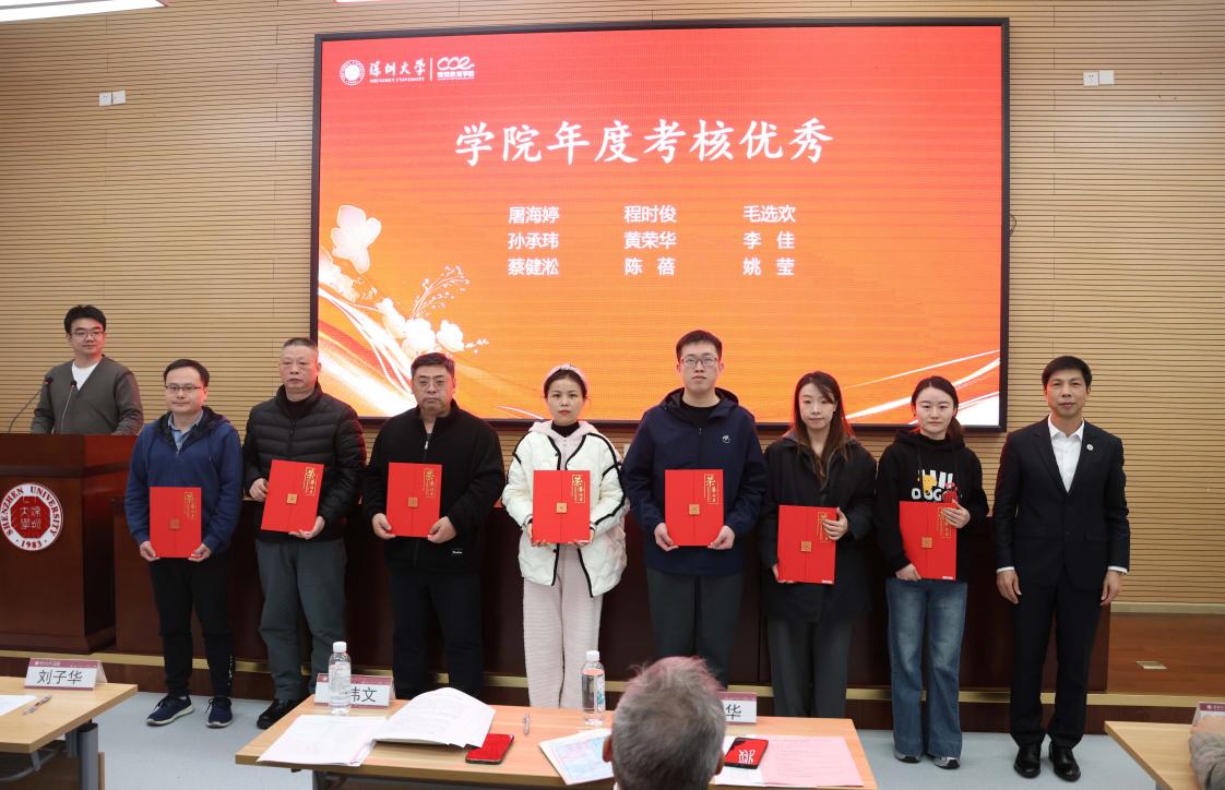随后,进行颁奖仪式,学院对在党内工作、运动会及年度考核中取得优异成绩的教职工分别进行了表彰。共有三十多位教职工荣获各类奖项,他们的辛勤付出和卓越表现得到了充分肯定和认可。
