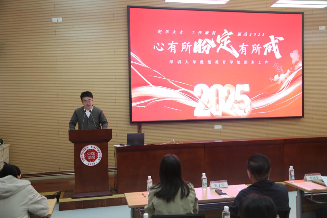 近日,深圳大学继续教育学院举办了2024年秋季学期期末工作会,全面回顾了过去一年的工作成果,并对2025年的计划目标、工作重点等进行部署,会议由安仝老师主持。
