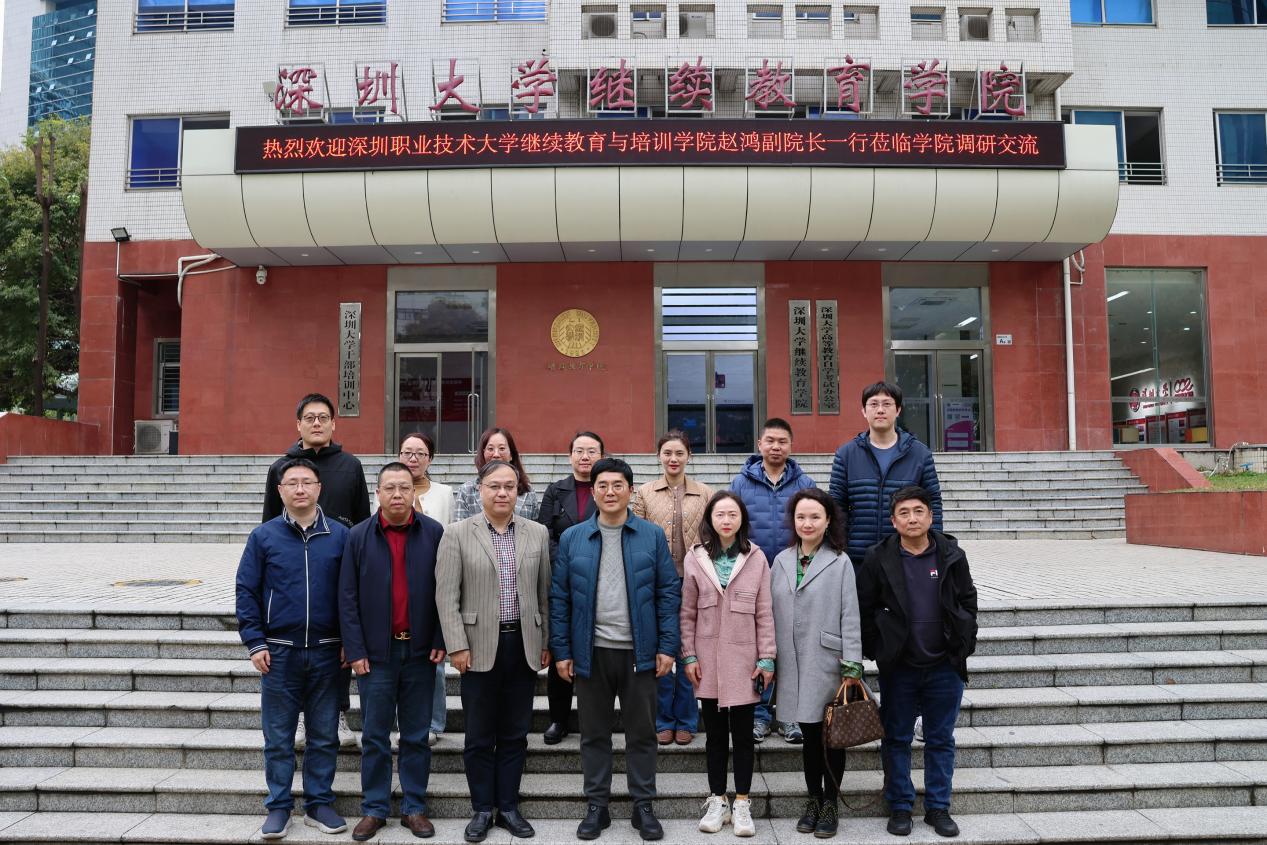 3月7日,深圳职业技术大学继续教育与培训学院赵鸿副院长一行9人来访我院开展调研交流活动,深圳大学继续教育学院副院长王楠、胡蓉以及相关部门负责人等热情接待,双方在学院A座初心楼1002会议室举行交流座谈会。