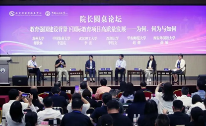 在“院长圆桌论坛”环节,院长李伟文与来自苏州大学、中国农业大学、武汉理工大学、西安外国语大学、华东师范大学等5所高校的院长同台交流,以“思政引领、数智赋能,落实全员、全方位、全链条的‘三全’育人模式”为主题,重点讲述了深圳大学“2+2国际本科项目”在粤港澳大湾区和中国特色社会主义先行示范区“双区”背景下的创新育人实践,通过构建数智化协同育人体系,将思想政治教育贯穿国际教育项目办学全过程,培养兼具家国情怀与全球视野的新时代国际化人才。