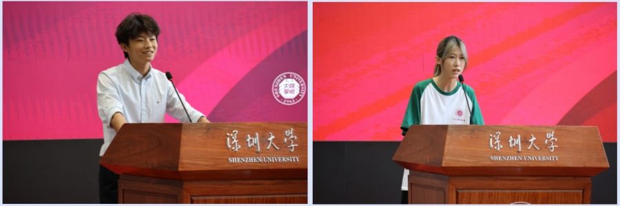 新生代表陈菲儿同学发言,她诚挚地表示将以饱满的热情投入到学习中,以深圳大学2+2国际本科项目为起点,开启新的学习征程,实现留学梦想。