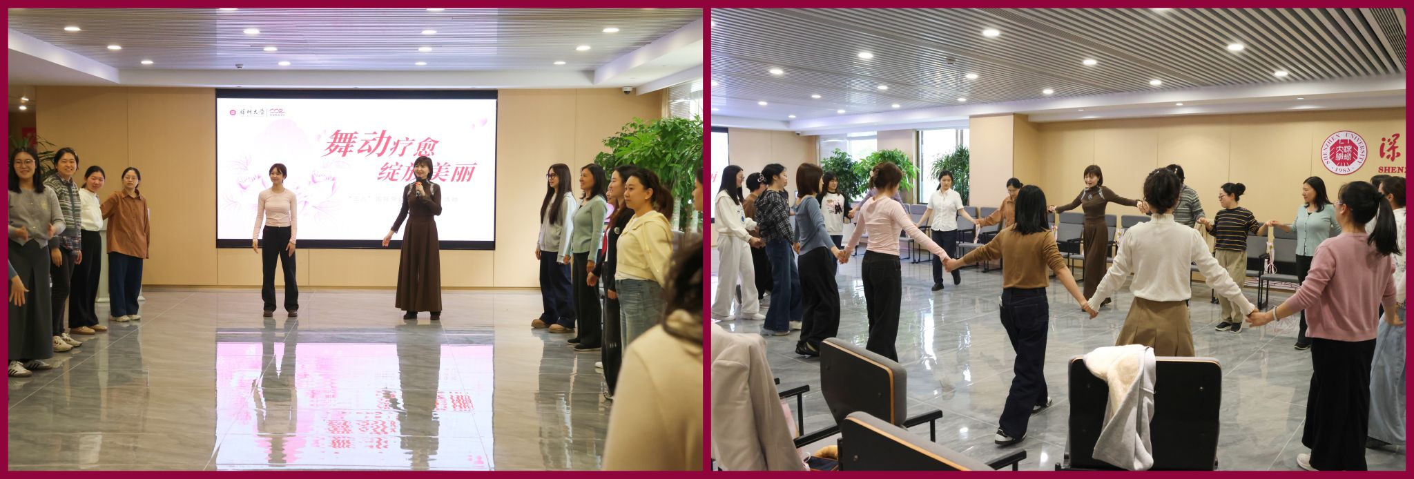 为关爱女教职工身心健康,提升职业幸福感,3月6日,我院在学院二楼共享空间开展了一场以“舞动疗愈·绽放美丽”为主题的“三八”国际劳动妇女节活动,现场邀请了深圳大学艺术学部艺术疗愈中心副主任李悦担任活动嘉宾。学院党总支书记张革华,副院长、工会主席刘子华出席活动并讲话,学院女教职工积极参加本次活动。
