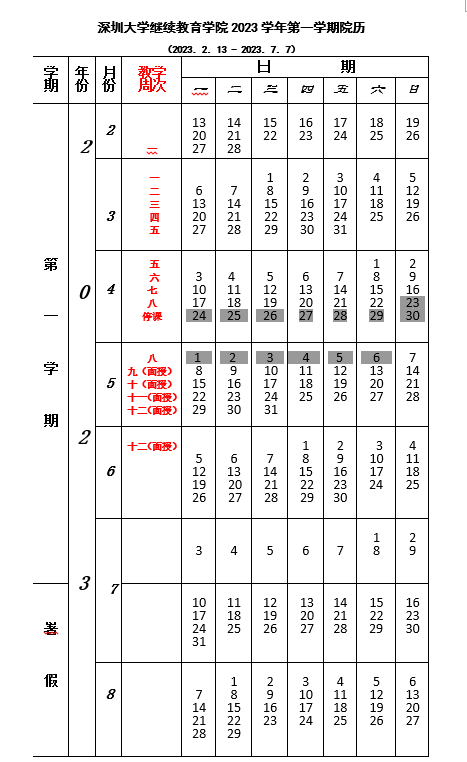 注:以上安排如有变动,以学院正式通知为准。请同学们经常登录深圳大学继续教育学院主页:http://cce.szu.edu.cn ,获取学院各类最新信息