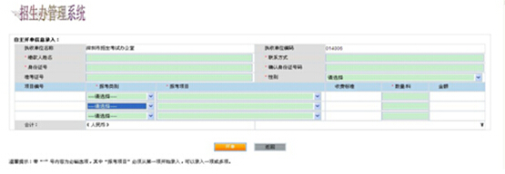 考生进入开单界面,可以实现自主开单,并发送缴费基础数据给财委,如下图所示: