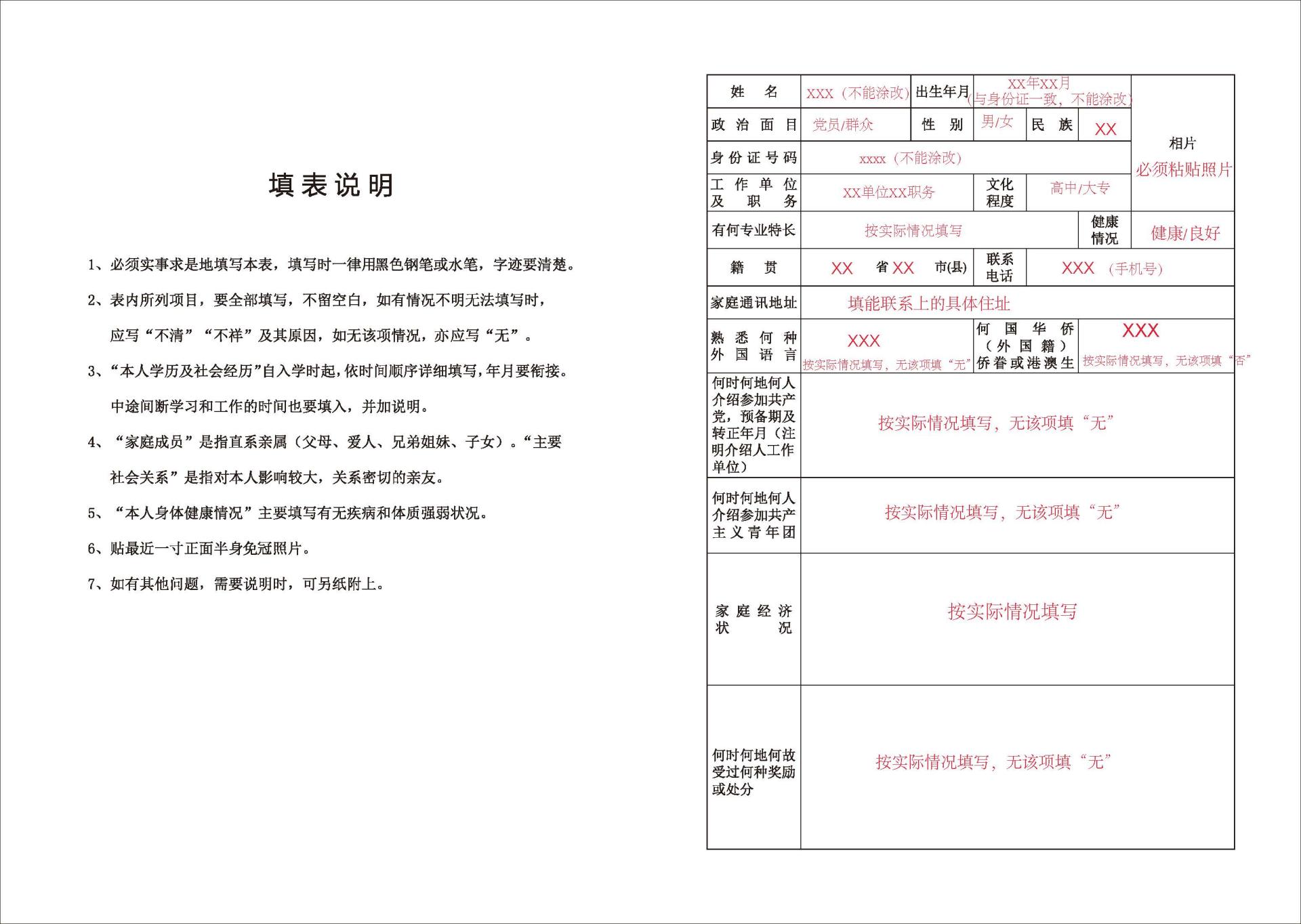 3.照片一栏必须粘贴近照,不得留空。