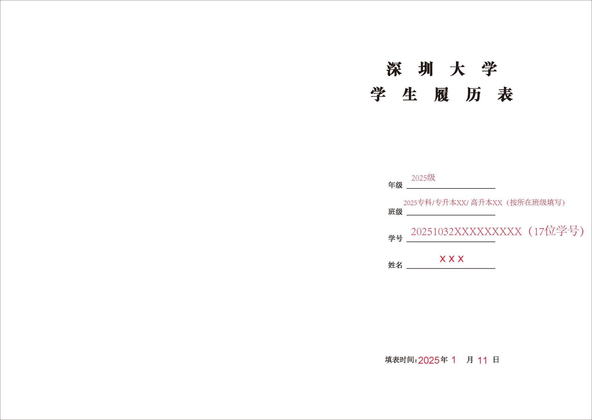 附件:新生履历表填写模板及说明