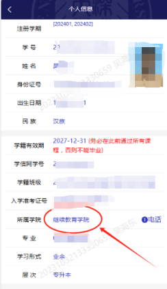查询所属学院的方法:登录“深大成教”微信公众号,点击“个人信息”,“所属学院”一栏显示为“继续教育学院”
