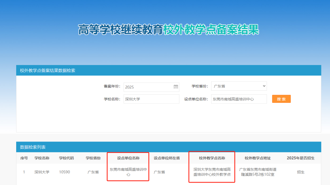 深圳大学继续教育学院 东莞高盛教学点 |