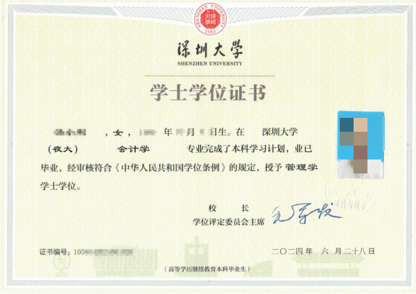 凡被深圳大学正式录取,按规定修完专业教学计划的全部课程且考核合格者,由深圳大学颁发“成人高等教育毕业证书”,毕业证书可在国家教育部指定的“中国高等教育学生信息网(www.chsi.com.cn)”查询,国家承认学历。