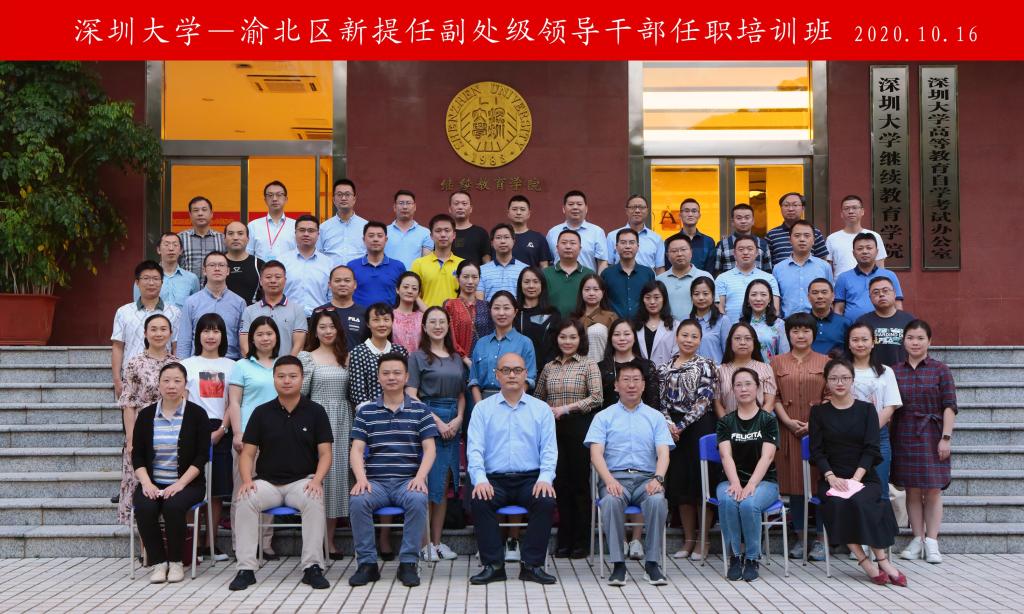 10月12日至16日,由中共重庆市渝北区委组织部、区委党校主办,深圳大学继续教育学院承办的“渝北区新提任副处级领导干部任职培训班”专题培训班在深圳大学罗湖校区成功举办,渝北区新提任副处级领导干部共56人参加了培训并顺利结业。