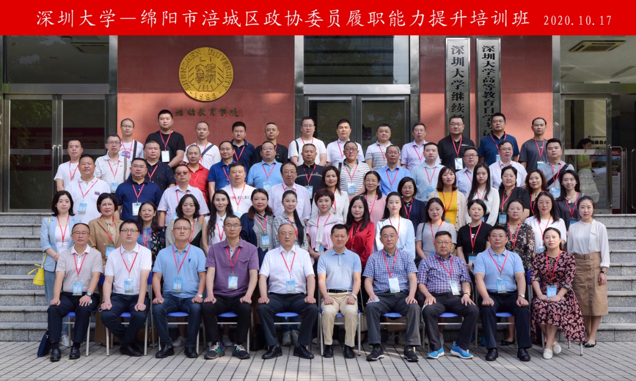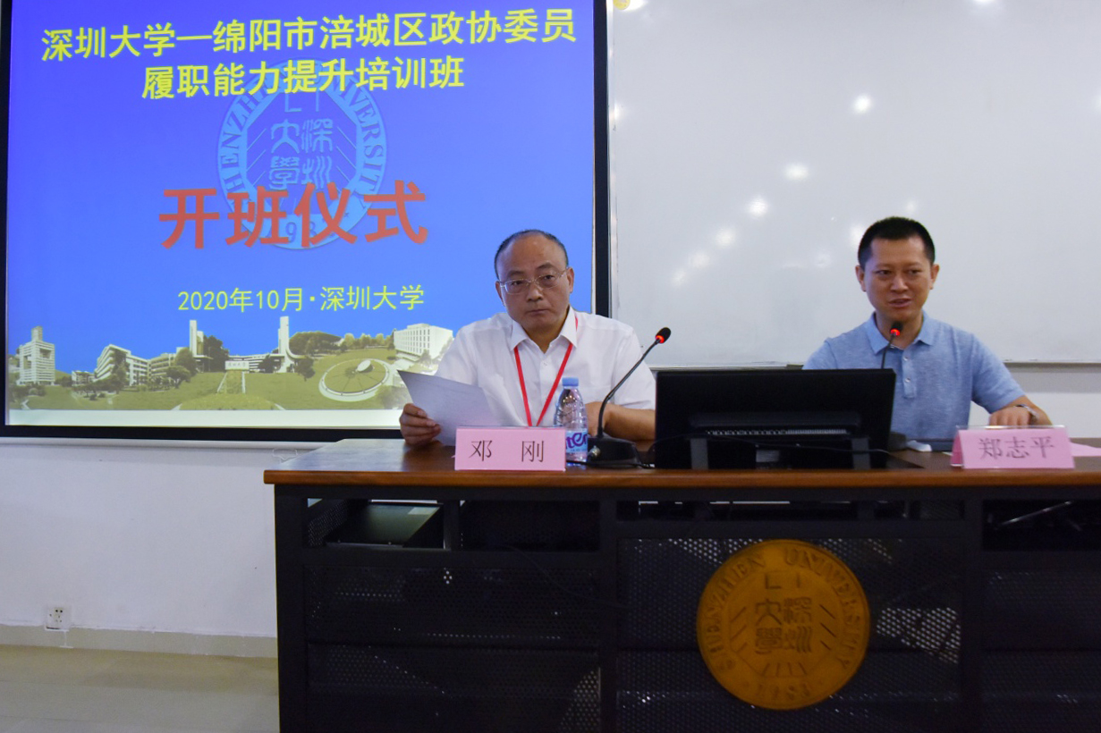 10月16日,绵阳市涪城区政协委员履职能力提升培训班在深圳大学继续教育学院开班,涪城区政协副主席邓刚做开班动员讲话,深圳大学继续教育学院副院长郑志平致欢迎词,62位学员参加培训。