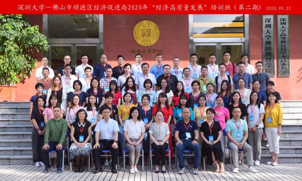 9月22日,佛山市顺德区济促进局2020年“经济高质量发展”培训班(第二期)在深圳大学继续教育学院开班,佛山市顺德区贸促会会长何绮君作开班讲话,深圳大学继续教育学院副院长胡蓉致欢迎辞,共60位学员参加培训。