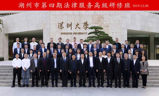 12月11日,浙江湖州市第四期法律服务高级研修班在深圳大学粤海校区圆满结束,湖州市司法系统干部和律师协会成员约60人参加了培训并顺利结业。湖州市司法局党委委员、副局长何成华,深圳大学继续教育学院副院长郑志平参加相关活动。