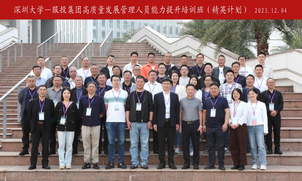 12月4日至12月8日,服投集团高质量发展管理人员能力提升培训班(精英计划)在深圳大学粤海校区成功举办,服投集团党委委员、总工程师王俊,深圳大学继续教育学院副院长刘子华出席开班式,共计44位学员参加培训。