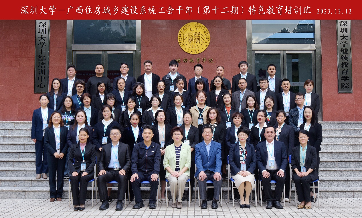 12月11日至12月14日,广西住房城乡建设系统工会干部(第十二期)教育特色培训班在深圳大学继续教育学院举办,广西住建系统各级工会干部共计52人参加了此次培训。广西壮族自治区住房和城乡建设厅二级巡视员梁立新,广西建设工会工作委员会副主任、二级调研员邹丽萍,深圳大学继续教育学院党总支书记陈志行出席开班式。