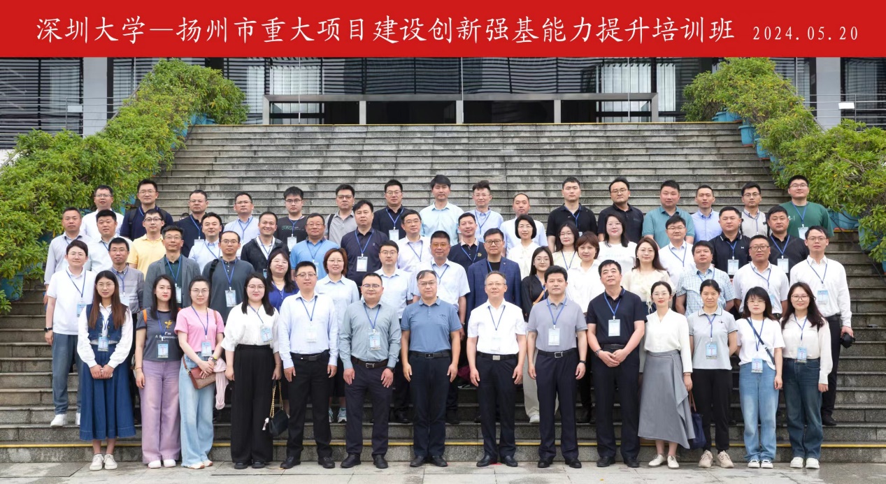 5月20日至5月24日,扬州市重大项目建设创新强基能力提升培训班在深圳大学粤海校区举办,共计60位学员参加此次培训。扬州市发改委党组成员、市委军民融合发展委员会办公室副主任郭志咸,深圳大学继续教育学院副院长王楠出席开班式。