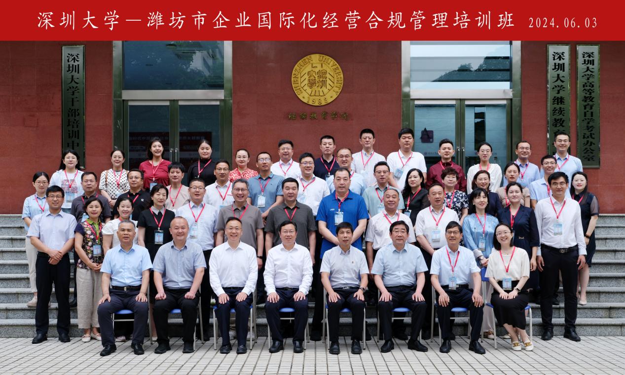 6月3日至6月7日,潍坊市企业国际化经营合规管理培训班在深圳大学继续教育学院举办,共计48位学员参加培训。潍坊市副市长、市政府党组成员狄波,深圳大学继续教育学院院长李伟文出席开班式。