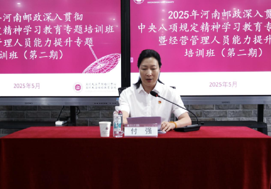5月19日至23日,2025年河南邮政分公司深入贯彻中央八项规定精神学习教育专题读书班暨经营管理人员能力提升专题培训班(第二期)在深圳大学粤海校区举办,共计49位学员参加培训。中国邮政集团有限公司河南省分公司人力资源部副总经理付强出席开班式并讲话。