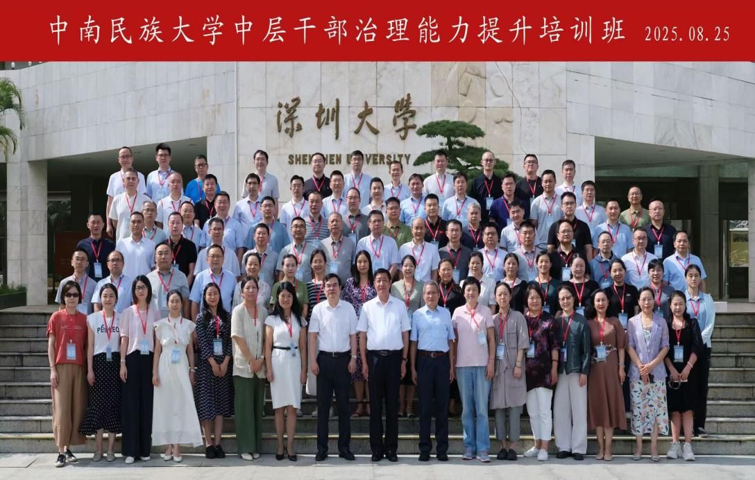8月25日至29日,中南民族大学中层干部治理能力提升培训班在深圳大学粤海校区举办,共计80位学员参加培训。中南民族大学党委书记徐业勤,中南民族大学党委常委、副校长李红燕,深圳大学副校长李永华,深圳大学继续教育学院党总支书记张革华出席开班式。