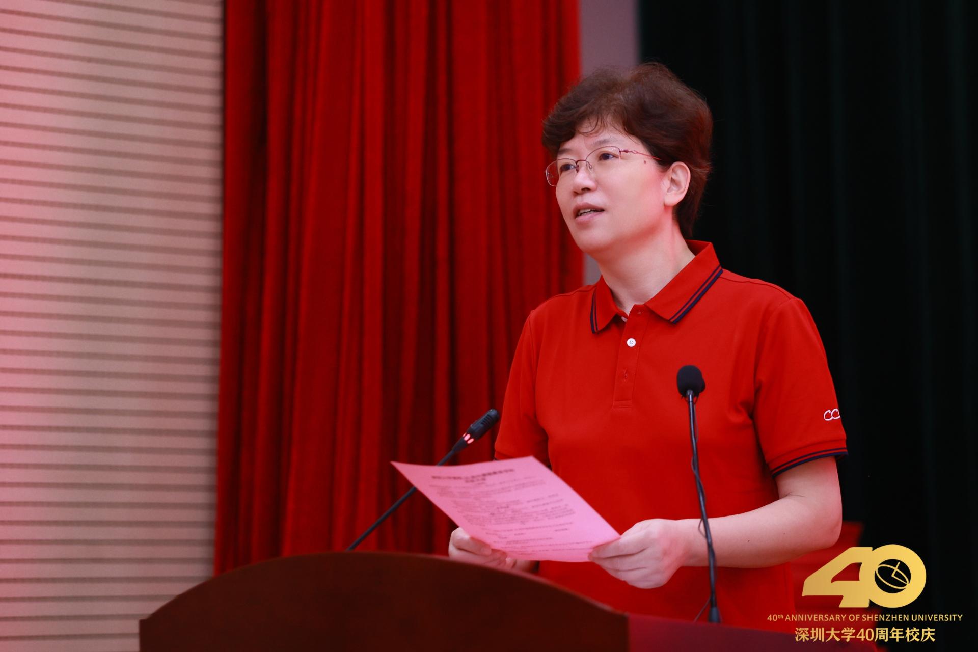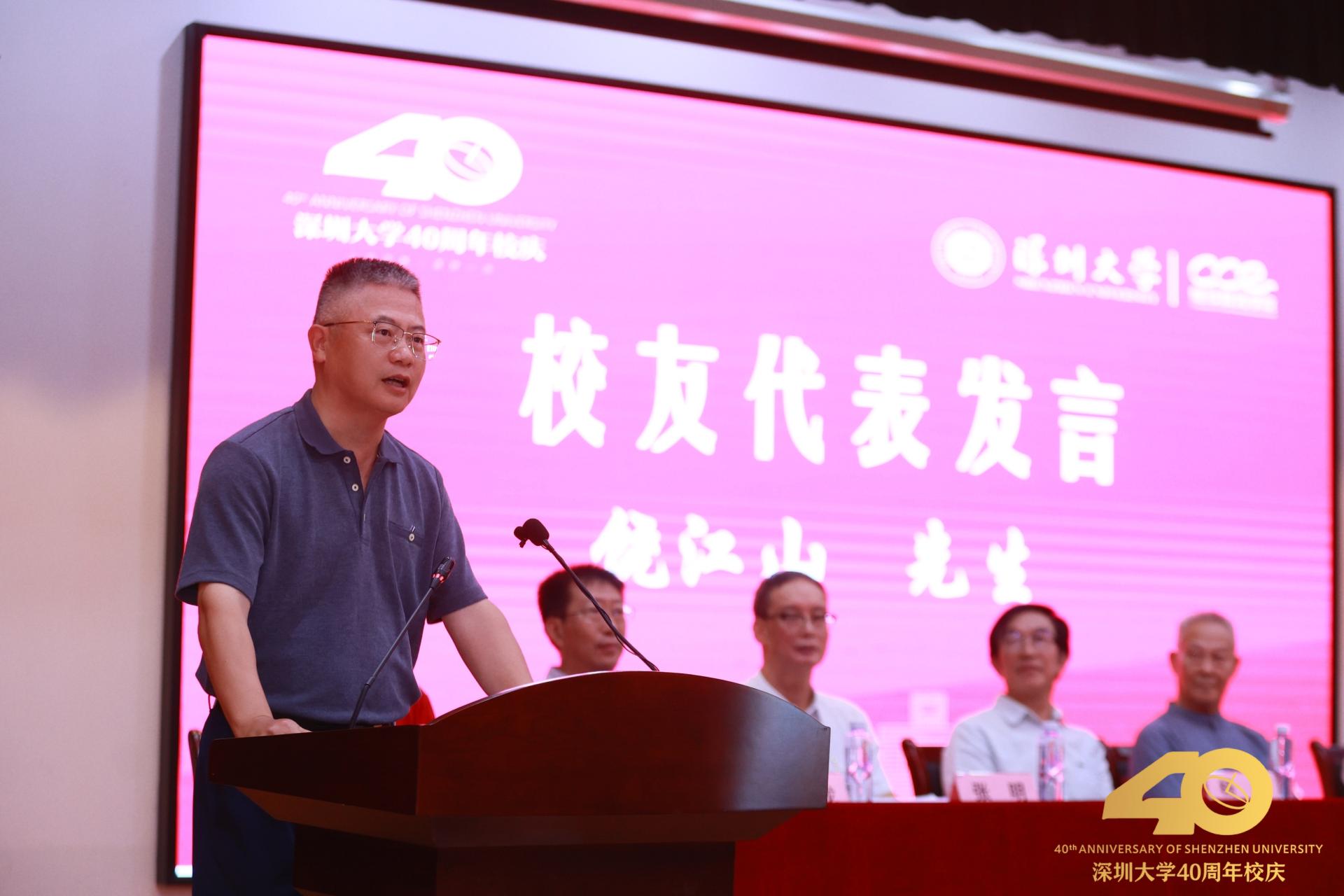 捐赠仪式环节后,深圳大学汪永成副校长在庆祝活动作讲话。他首先简要介绍了深圳大学的建校历程、办学特色、科学研究、发展成就等情况;其次对继续教育学院办学40年在服务社会、培养人才等方面做出的贡献给予了充分肯定;之后,对学院历任领导、广大校友们分别对深圳大学建设与发展付出的努力和给予的关心和支持表示由衷感谢;高质量办学是继续教育学院发展的重要保证,希望学院在新的发展征程上,不断创新、不断进取,取得更辉煌的成绩。