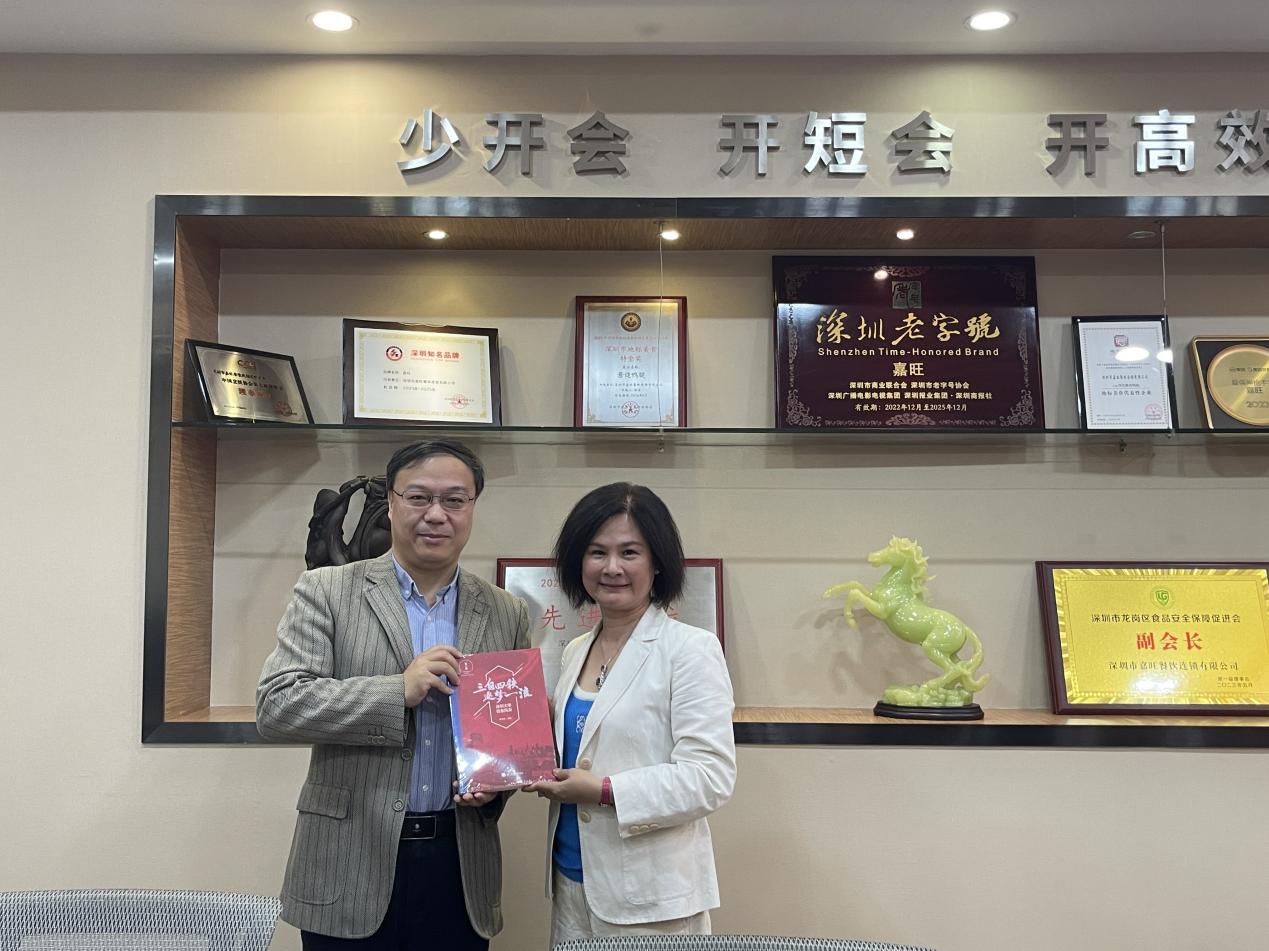 座谈交流伊始,得时集团公司代表赵艳娥对校友会的到访表示了热烈欢迎,得时集团总经理助理娄轶伦向校友会详细介绍了得时集团公司的发展史包含业务领域、发展历程、经营理念以及未来的战略规划。通过33年在深圳的开拓深耕,坚守初心,严保食品安全防线,“一食一饭”对得起百姓,得时集团连续15次荣获“中国餐饮百强企业”称号、国家级荣誉16次项(含中国“餐饮服务食品安全示范单位”)、市级荣誉10次项(深圳老字号、深圳知名品牌、深圳餐饮行业杰出企业)。