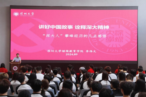 开学典礼结束后,进入院长“思政第一课”。李伟文院长的授课主题是“讲好中国故事,诠释深大精神”。首先,他从为什么要讲好中国故事这个问题出发,分析在当前复杂的国际形势下,中国“挨骂”问题还明显存在,“讲好中国故事”命题的提出充分彰显了党和国家逢山开路、遇水架桥的智慧和决心,强大起来的中国,需要被世界全面、客观地了解。接着,他从现代中国视角,阐述如何讲好中华民族伟大复兴的故事。作为我国首批经济特区,深圳经过 40年的蜕变,已成为全国改革开放的一面旗帜、创新发展的一个标杆、一座充满魅力和创新力的国际化创新型城市。作为以改革开放最前沿城市命名的大学,深圳大学以“敢为天下先”的改革创新精神,在核心指标及成长数据上跻身国内发展最快的高校之一。除此之外,李伟文院长还通过介绍最近热门国产游戏《黑神话:悟空》,讲述从传统中国视角如何讲好中国优秀传统文化故事和中国和平发展的故事。最后,他通过分享攀登“珠穆朗玛峰”的亲身经历,解析深大精神,让自立自律自强、脚踏实地、自强不息的深大精神成为我们深圳大学2+2国际本科项目学生共同的文化品格。
